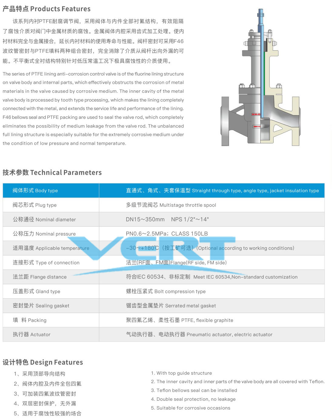 本(běn)公司生産的系列(liè)内襯PTFE耐腐調節閥(fa), 接觸介質部位🐪采(cai) 用高壓注塑工藝(yì),内部襯有聚四氟(fu)乙烯耐腐材料,可(kě)耐腐蝕及耐 老化(huà)🔞功能。如:鹽酸、硫酸(suān)、硝酸、氫氟酸等,又(you)采用聚四氟乙 烯(xī)波紋管密封,廣泛(fan)應用于各種工藝(yi)中對酸、堿等強腐(fǔ)蝕介質以 及有毒(dú)易🌏揮發等氣體、液(ye)體介質的過程控(kong)制。